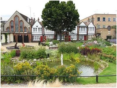 Southwark’s Red Cross Garden is one example of her community garden ethos; an ‘open air sitting room’ for the impoverished residents of the borough. This delightful space must have looked like a small oasis nestled between the endless, dilapidated Victorian slums. Six pretty Art and Crafts cottages and a community centre overlook the space that is open for all to enjoy. Pathways, benches and fine plantings give momentary respite from the everyday cares of life, even today.