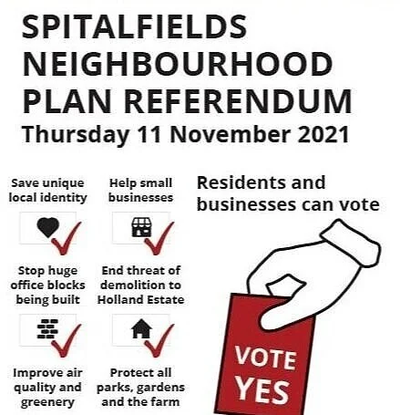 Stephanie and her colleagues at the Forum are asking people locally to go to their polling station on November 11th or register to vote by post beforehand and vote YES to keep Spitalfields & Banglatown a truly beautiful and diverse neighbourhood.