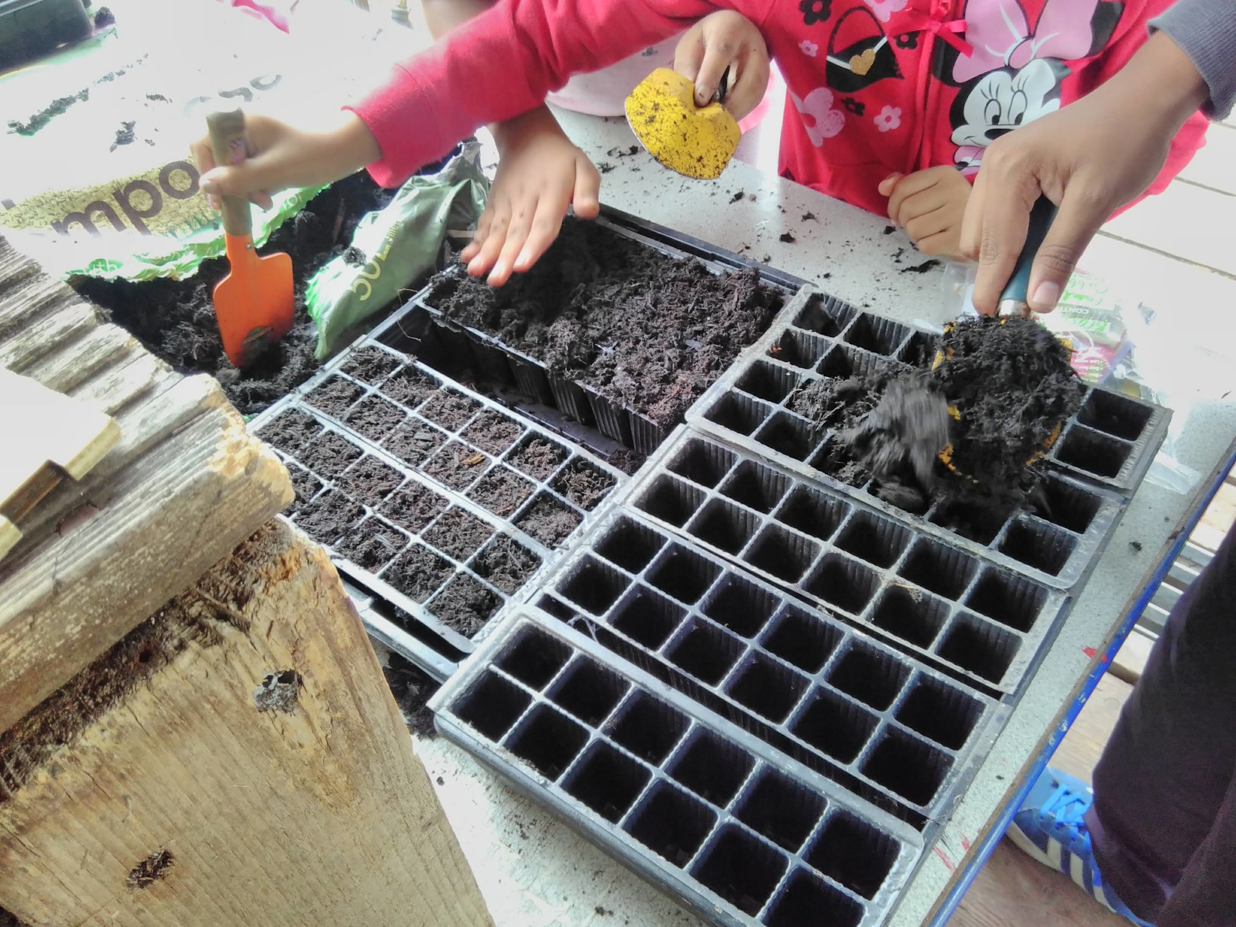 We started off by preparing pots and trays for planting. Our new volunteers weren't afraid of getting their hands dirty. They did it very neatly, and took a lot of pride in their work!