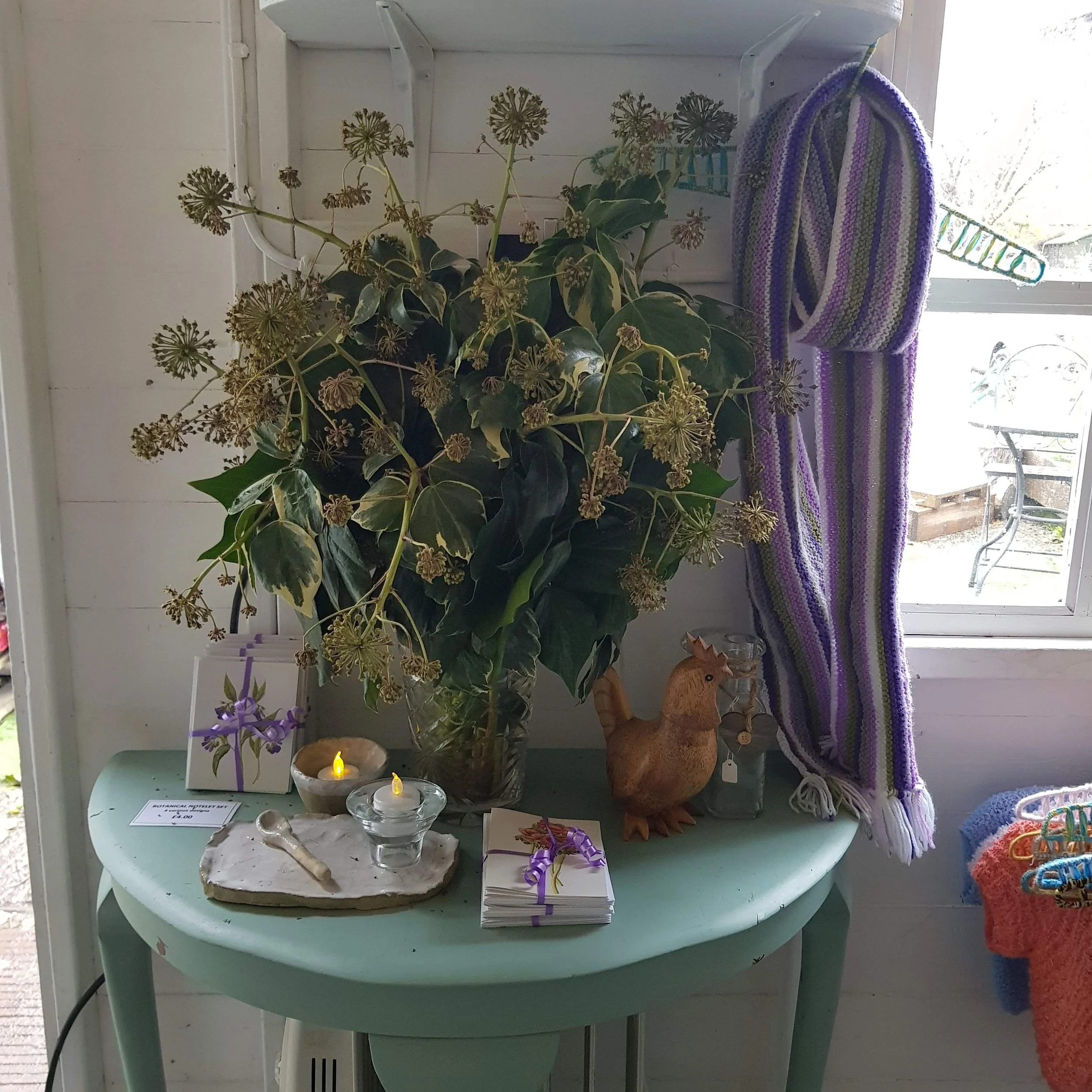The shop needs dressing for Christmas. We forage for ivy, holly, berries and fir cones, twisting them into wreaths for the display. Dried corn is added in and hyacinths are potted up to make delicate Christmas gifts. Generous friends of the farm donate ceramics, stationery, knitted garments and decorations. Our resident herbalist, Louisa, makes trays of fragrant soap and distils herbs for mixing into various tinctures. How lucky we are to have this skill revived at the farm – we plan more wellbeing products in 2022.