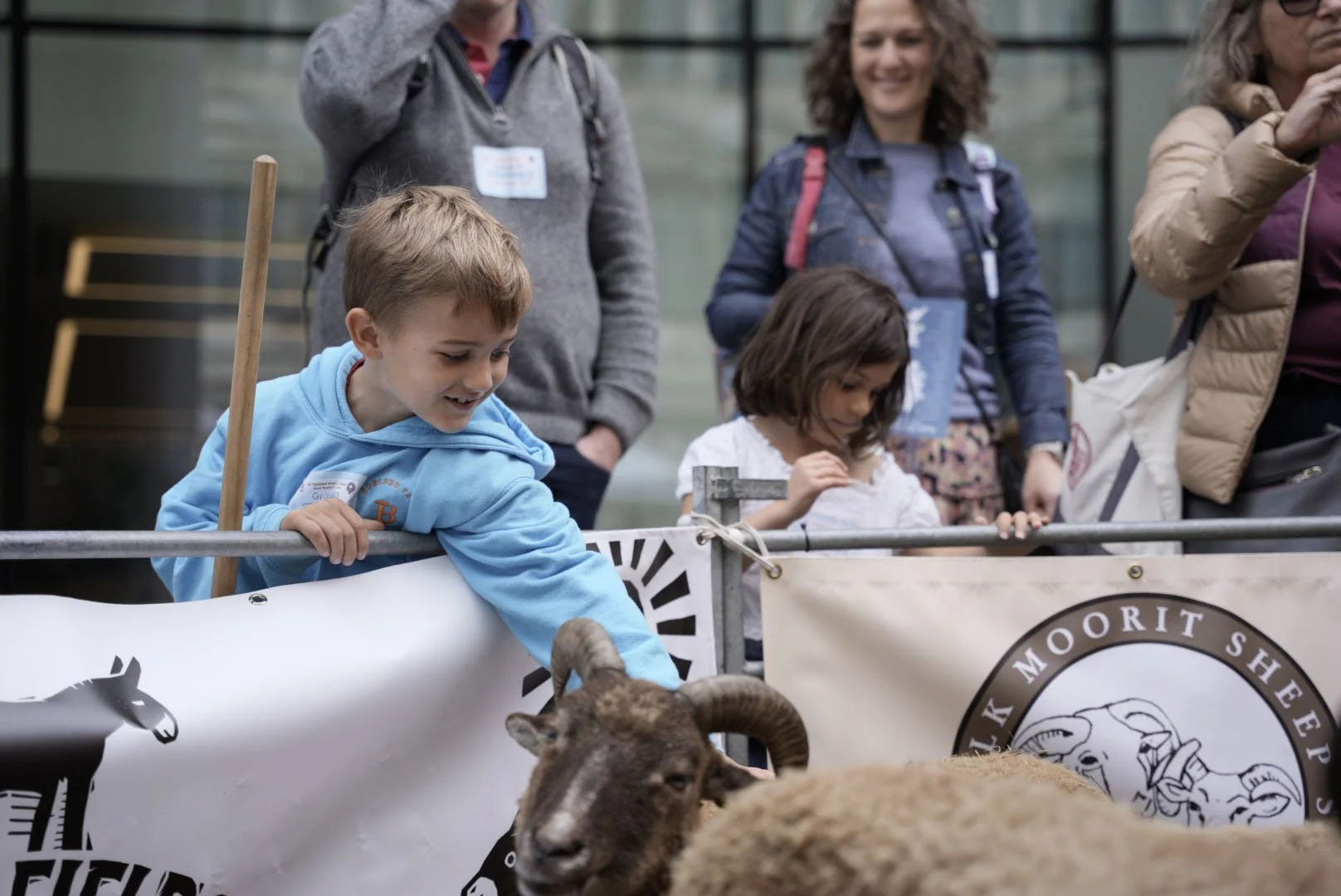 A highlight of the event is the amount of new connections we make with wool producers and crafters, as well as catching up with familiar faces from precious events. We were delighted to meet Justine and Tom from Ossian Knitwear, and our little lamb Rolo posed next to a gorgeous cardigan designed by Justine and made from Castlemilk Moorit wool! Beatrix also got her 5 mins of fame as we walked her down to visit our friends Gio and Spencer at the Herdy stall.