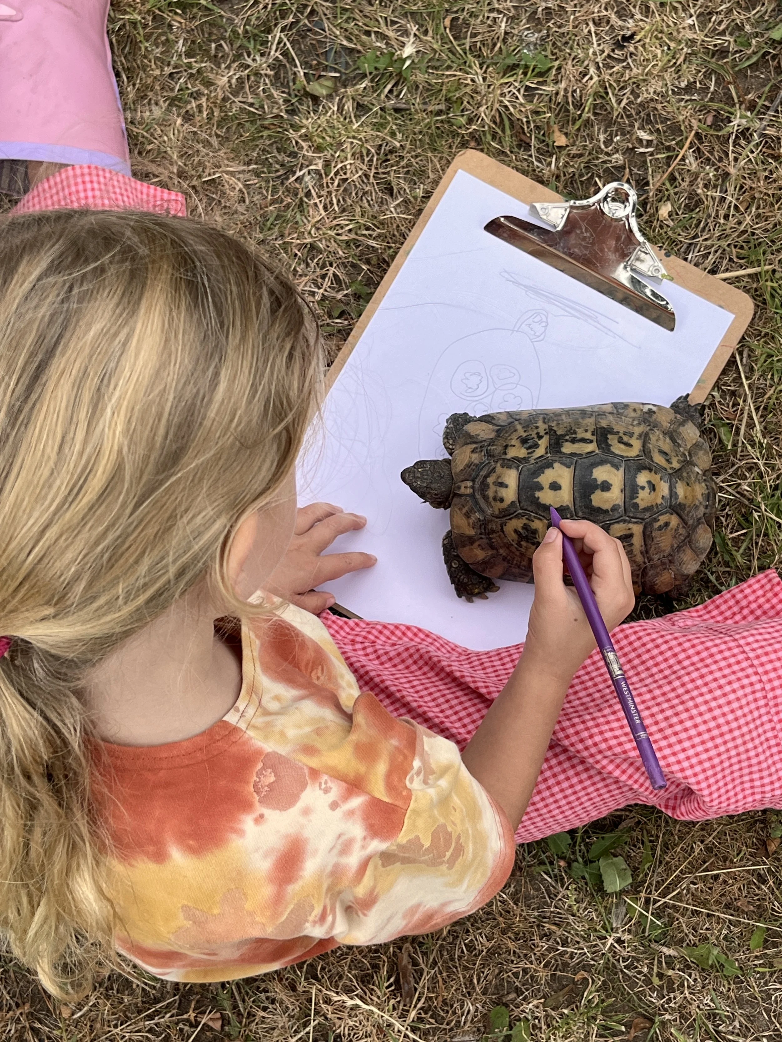 A range of free activities were on offer as part of Tower Hamlets Council’s Summer of Fun. These included den building, a drawing safari, gardening, donkey grooming, and a minibeast hunt for children aged 5-15 years. These sessions were thoroughly enjoyed and we were happy to see new children explore the farm for the first time. We also had a special summer guest: Toby the tortoise, who won the hearts of all who had the pleasure to meet him and was carefully drawn by children in our drawing safari. Our comic book workshop with Fredde was a massive hit, with children learning how to develop characters and storylines from their imaginations.