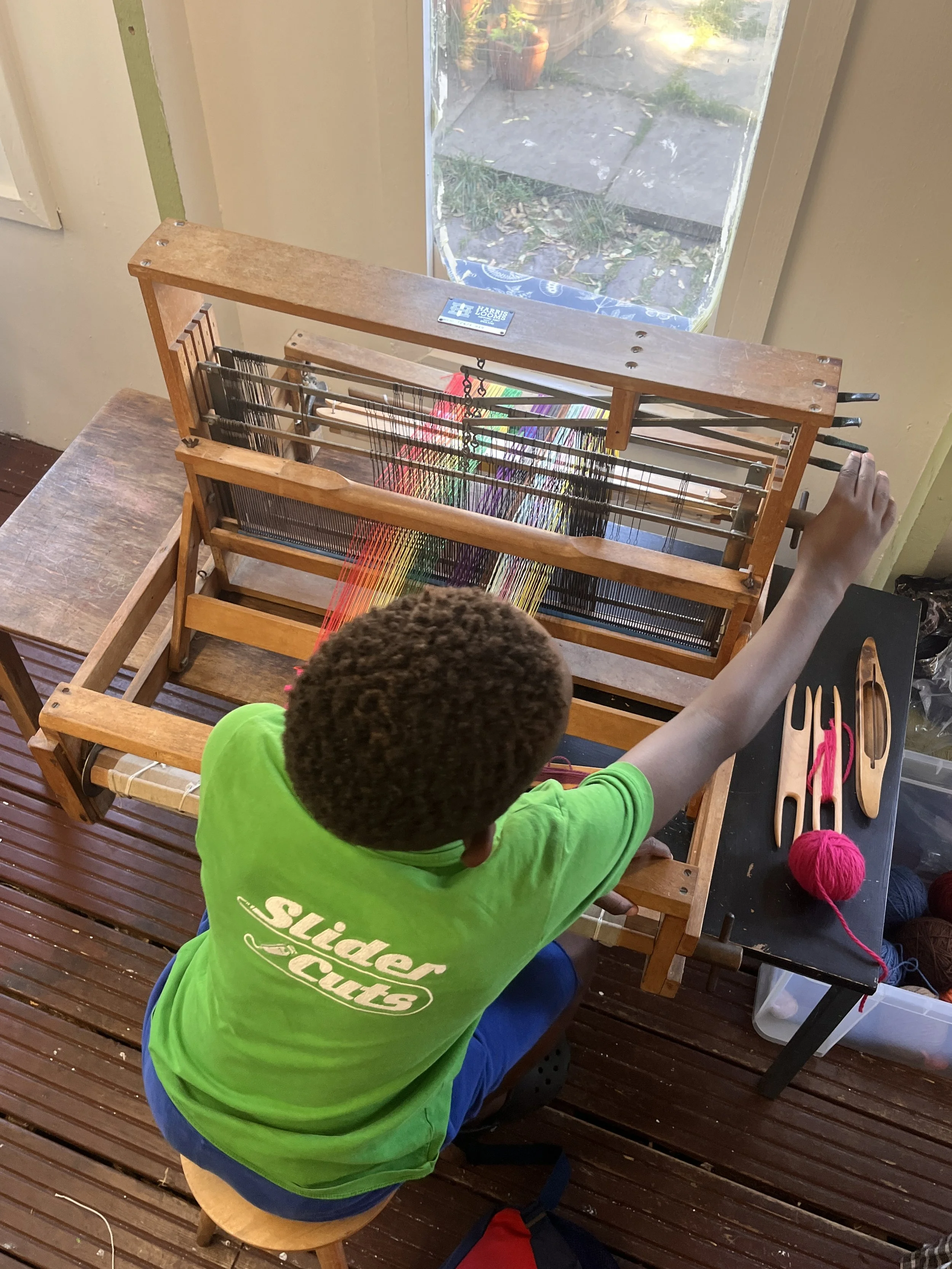 We had visitors all the way from Preston join us for a cyanotype printing workshop. We explored the farm and collected leaves, feathers and flowers to make our designs. The children then enjoyed watching the magic unfold in front of their eyes as the chemicals and sunlight combined to produce their very own sun prints. We also ran an all—day weaving workshop, which saw children drop-in to get involved with the table loom, peg loom and try their hand at paper weaving.