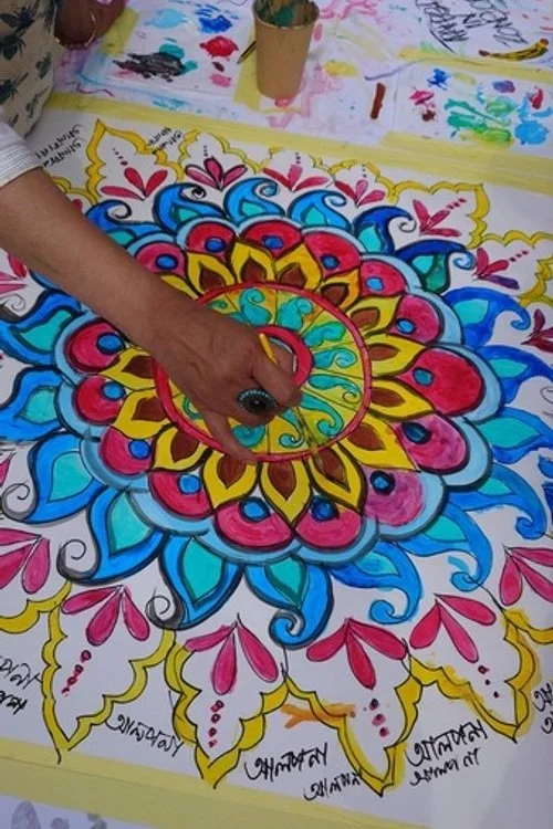 Alpona art is a traditional Bengali folk art. Our teacher Husna will share a brief history and the cultural significance of Alpona with us and we will look at some examples.